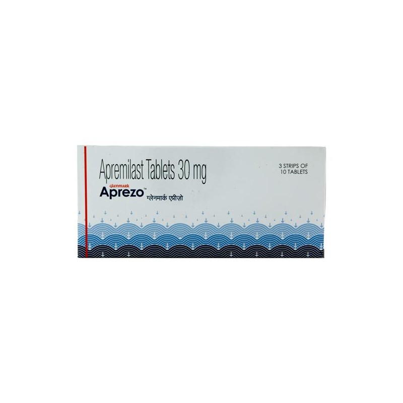 APREZO 30MG contain Apremilast which belongs to a group of medicine called phosphodiesterase 4 inhibitors. It is used to treat active psoriatic arthritis, moderate to severe chronic plaque psoriasis and Behcet’s disease (BD) in adults. Psoriatic arthritis is an inflammatory disease of the joint, that affects some people who have psoriasis which is an inflammatory disease condition of the skin. Plaque psoriasis is chararterised red, scaly, thick, itchy, painful patches on your skin and can also affect your scalp and nails. Behcet’s disease is a rare type of inflammatory disease which affect many parts of the body.