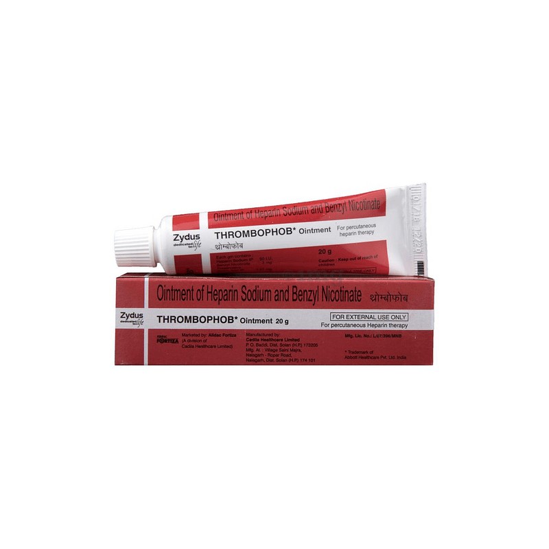 Thrombophob Ointment is a combination of two medicines used to treat superficial thrombophlebitis (inflammation or swelling of a vein due to a blood clot). It helps to relieve pain and inflammation by speeding up the healing process.