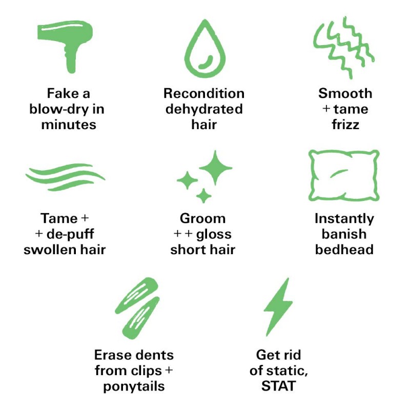 - for a quick fix or restyle, apply to any unruly areas/morning bed head and blow-dry sections