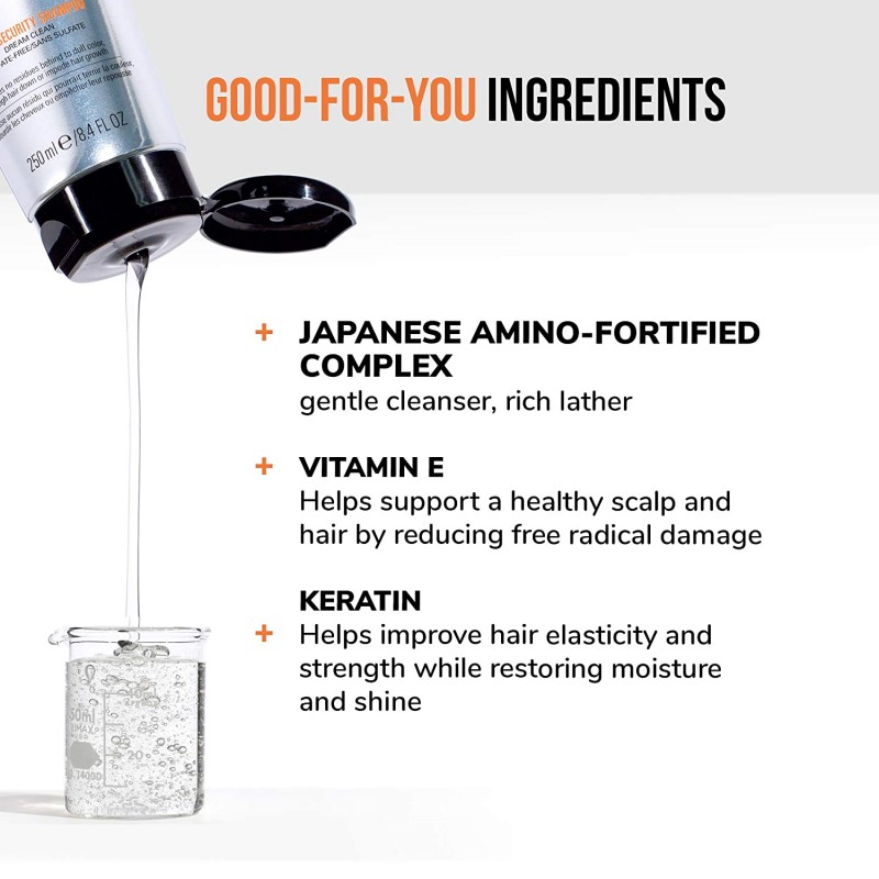 Perfect for all hair types, this shampoo is great for color-treated hair and safeguards against color fade. A great shampoo for thinning hair, curly hair, coarse hair, frizzy hair, oily hair, dry hair, damaged hair, fragile hair, or if you have extensions. Color Security Shampoo is safe for color treated and chemically treated hair, curly or textured, and hair that tangles easily. Every ingredient in our groundbreaking, 100% clean, sulfate-free formula rinses off completely. So you always end up with the cleanest, freshest, healthiest hair and scalp possible. Keep your color looking great without turning brassy or dull with Color Security Shampoo, and pair with Color Security Conditioner for perfect, protected shine.