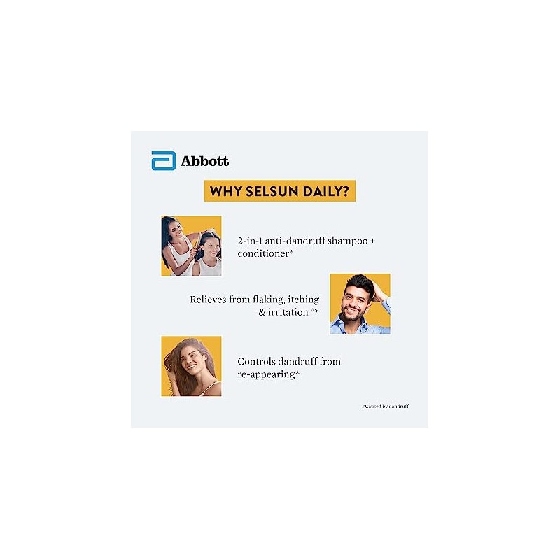 Selsun Daily targets the fungi causing dandruff and helps bring relief from dandruff related itching and flaking. Furthermore, it controls excessive oiliness and the production of new flakes