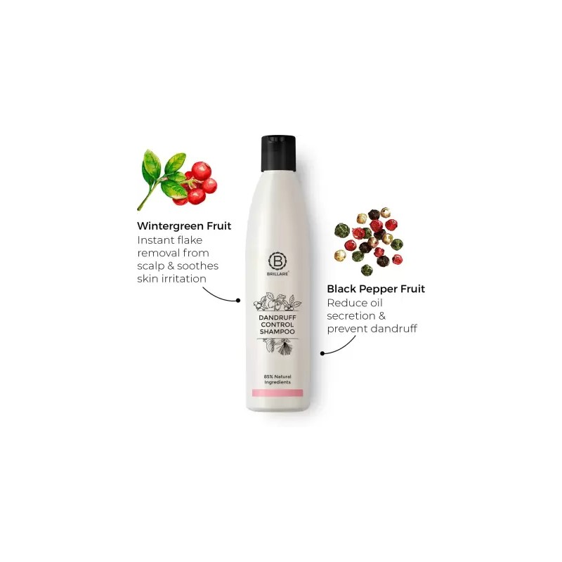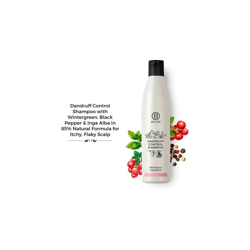 Brillare Anti-Dandruff Shampoo is 85% natural with the ingredients like Wintergreen Fruit, Black Pepper fruit & Inga alba.It has dandruff remover elements.