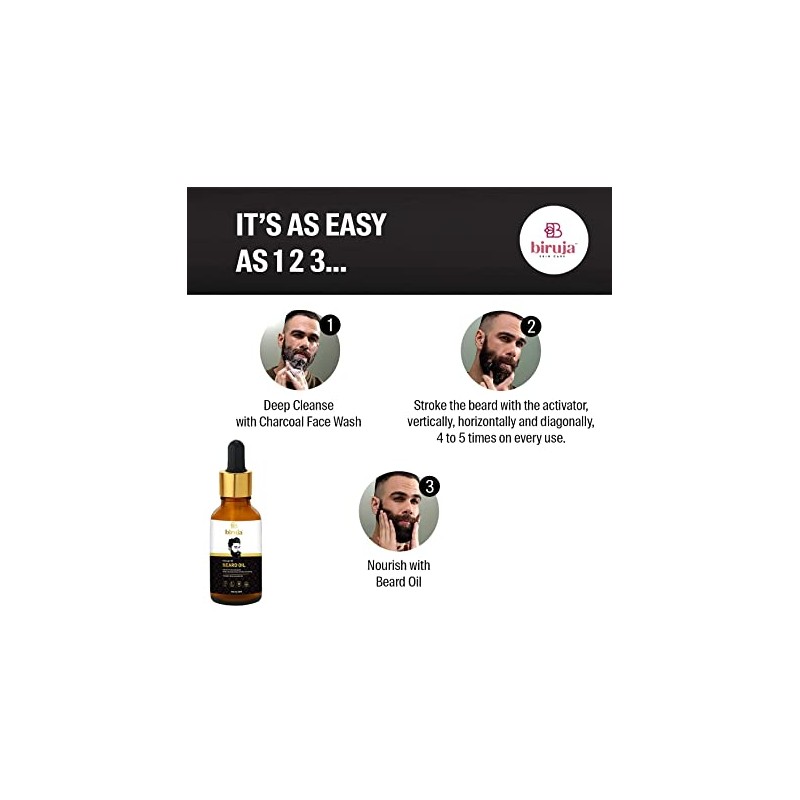 Biruja Beard Oil makes you feel like a million bucks, but also prevents redness and itchiness. Aloe vera extracts and Almond oil keep the beard nourished and soft. The sleek style of your beard is always maintained with Beard. Keeps your beard and mooch skin feeling its best: our easy to use formula supports the overall health of your beard and helps keep your skin from itching too.