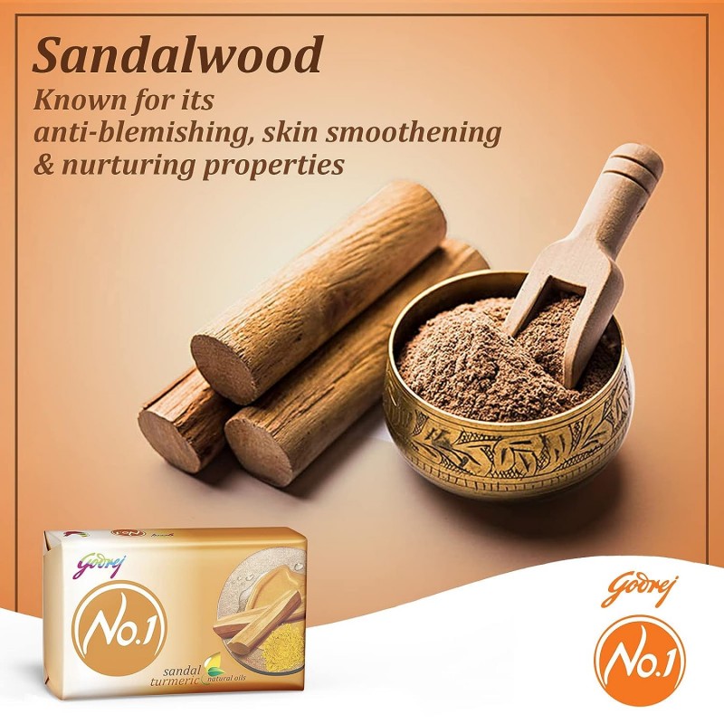 Favored by over 380 million consumers, Godrej No.1 offers you 'Nature's way to beauty with carefully chosen natural ingredients to make your skin naturally beautiful. It is Grade 1 quality soap and the highest-selling soap of its kind in the country. Godrej No.1 Sandal and Turmeric soap is enriched with the goodness of Sandalwood to heal the skin with its anti- blemishing and nurturing propertiesas well as Turmeric, known for its anti-septic and healing properties.