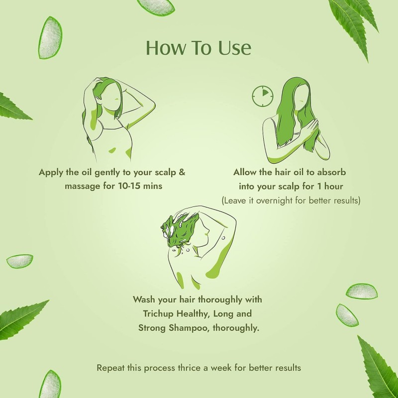 Trichup oil, contains the natural goodness of sesame oil and coconut oil which are further enriched with herbs, it revitalizes hair follicles, stimulates growth and adds volume to your hair naturally.