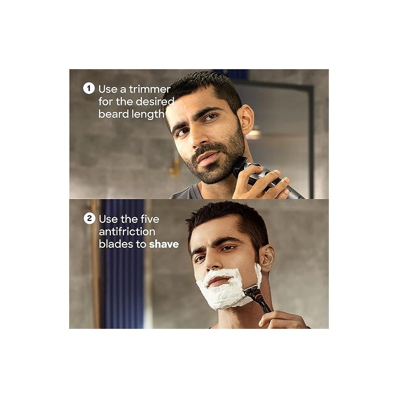 Precision trimmer technology on the back of the cartridge, that shapes all types of beard styles