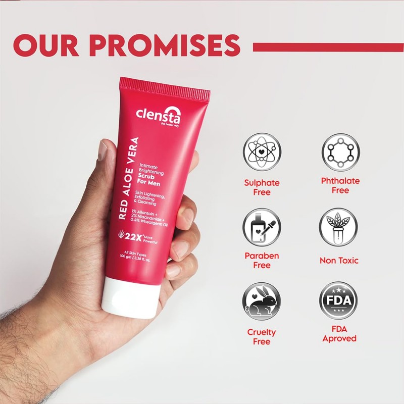 This scrub has Allantoin that exfoliates dead skin cells, reducing dark spots and discoloration. Niacinamide, which brightens skin tone, while wheatgerm oil, provides deep hydration and prevents dryness in intimate areas.