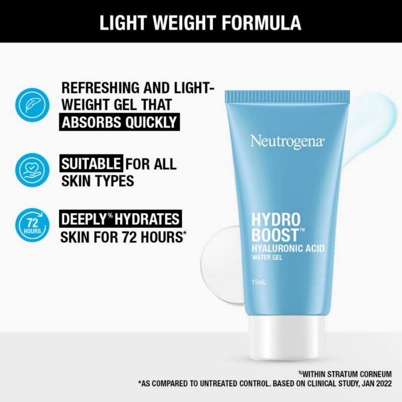 Neutrogena Hydro Boost Hyaluronic Acid Hydrating Gel is a water-based Moisturizer that provides intense hydration to the skin. Its unique formula contains hyaluronic acid, a powerful hydrating ingredient that locks in moisture and keeps the skin supple and smooth. This gel Moisturizer for the face is non-comedogenic and dermatologically tested, making it safe for all skin types.