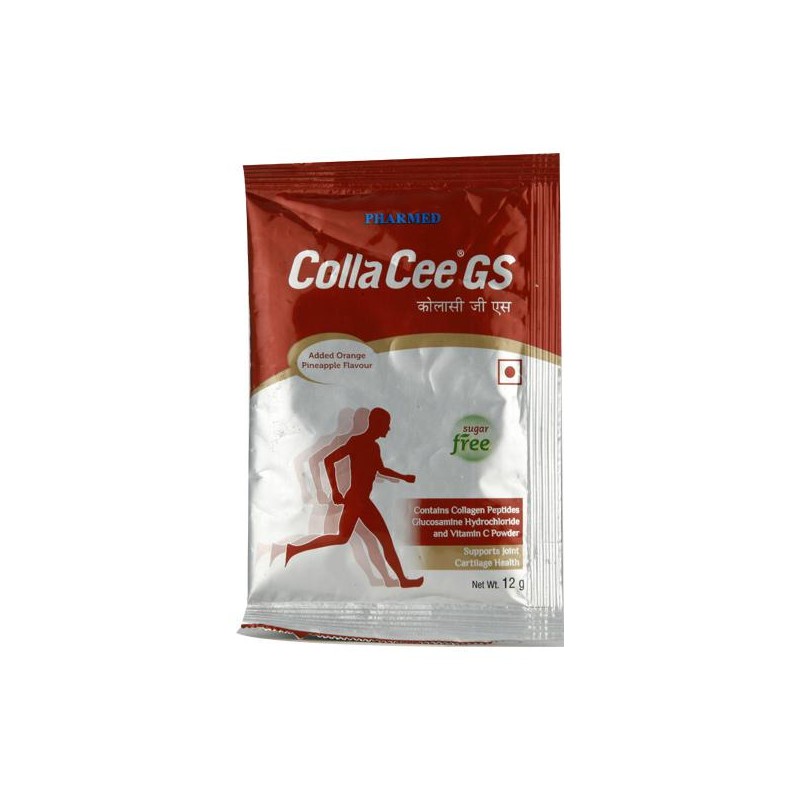 Collacee-GS Sachet contains Collagen peptide, Glucosamine and Vitamin C. In osteoarthritis, collagen based nutritional supplement have a very good role to play. Collagen is a major constituent of Bone Cartilage and loss of Collagen leads to Cartilage damage and Osteo-arthritis.Collagen Peptides supplementation has important role in preventing and treating Osteo-Arthritis.Collagen peptides regenerates cartilage by increasing proliferation of proteoglycans and Chondrocytes. It provides strength in load bearing bones therefore, improves flexibility of joints and suppresses pro-inflammatory cytokines IL-1 and TNF-alpha, therefore, reduces inflammation.