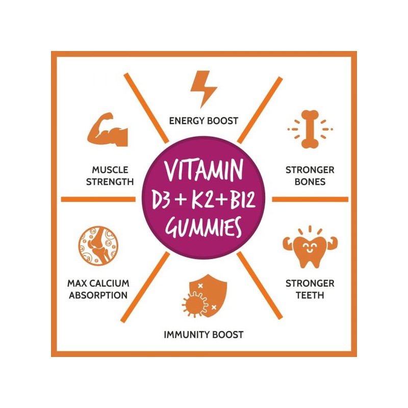 • HIGH ENERGY, IMMUNITY & CALCIUM ABSORPTION: Vitamin B12 ensures high energy, helps fight fatigue and keeps you active till the end of the day. Vitamin D3 K2 helps boost immunity and Calcium absorption.