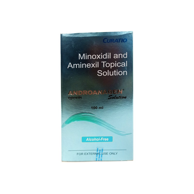 ANDROANAGEN SOLUTION is a combination of Minoxidil and Aminexil which belongs to the group of medicines called Vasodilating agents. It is used to treat alopecia androgenetica (male pattern baldness).
