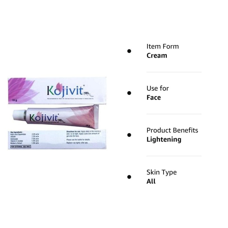 Kojivit Gel Kojic Acid Skin Lightening, Hypomelanotic Skin Pigmentation - 15gm (Pack of 3)