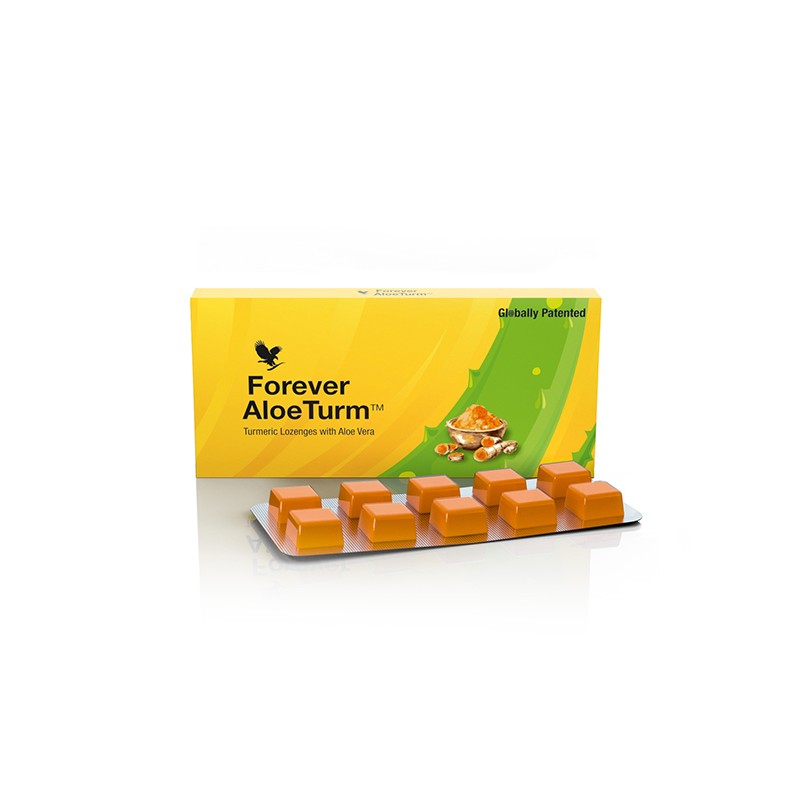 Forever Aloeturm is a globally patented formulation to boost immunity, for pain relief, oral hygiene and for treating signs and symptoms of common cough and cold. These mouth dissolving lozenges ensure almost 100% buccal absorption of Curcumin instantly and directly into the bloodstream safely and side effect free. 100% natural, 100% safe.
