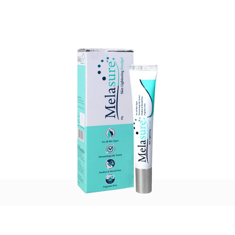 Information about Melasure Skin Lightening Emulgel Melasure Skin Lightening Emulgel is specifically designed to help provide a glowing skin as well as lighten one's skin tone. No amount of steroids have been added to achieve this result. The mulberry extract in it is a rich source of antioxidants and it protects the skin cells from damage caused by harmful free radicals. Key Ingredients: Niacinamide Mulberry Extract Alpha Arbutin Kojic acid Dipalmitate Key Benefits: The gel helps achieve a lighter skin tone This gel has been dermatologically tested Mulberry is used by many for its antioxidant properties It is free of any added steroids or any fragrance Directions For Use: Use as directed by the physician. Safety Information: Read the label carefully before use Store in a cool dry place away from direct sunlight Keep out of reach of the children Do not freeze
