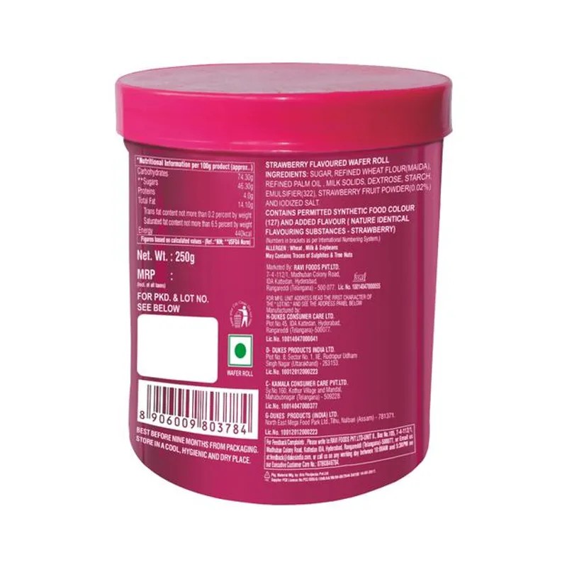 Dukes Waffy Strawberry Flavoured Wafer Rolls - 250gm