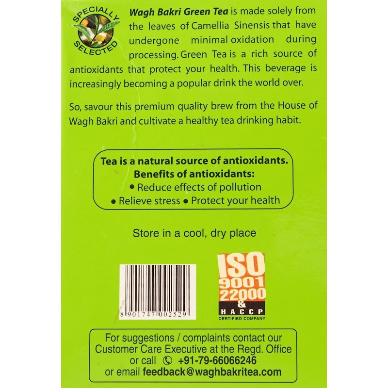 Wagh Bakri Green Tea is solely from the leaves of Camellia Sinensis that have undergone minimal oxidation during processing. Green Tea is a rich source of antioxidants that protect your health. This beverage is increasingly becoming a popular drink the world over. So, savour this premium quality brew from the House of Wagh Bakri and cultivate a healthy tea drinking habit.