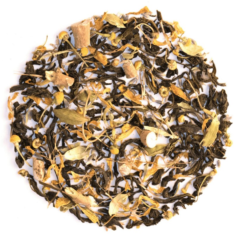 This is a relaxing herbal ayurvedic tea blended with the premium quality Green Tea, calming properties of Chamomile, ayurvedic rejuvenating herb Ashwagandha along with classic Lavender and sweet & soothing aroma of Cardamom to encourage a blissful sound sleep.