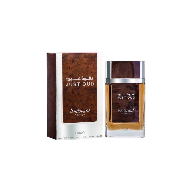 REDWOOD International Presents Arabic Perfume Lattafa Just Oud Boulevard Oriental Woody Fragrance Perfume Spray/EDP (Eau de Parfum) 100ml Directly From UAE. Its a Dream Perfume From The Pages Of The Arabian Nights, Just Oud Boulevard Edition Is A Scent Which Dazzles All The Senses With Its Evocation Of The Rosy Persian Dawn. Using Ingredients Which Have Been Prized In The East For Thousands Of Years. Just Oud Boulevard Edition By Lattafa Perfumes Is An Oriental Woody Fragrance For Women And Men. It is Long Lasting, 100% Original and Authentic Perfume and very easy to use. Perfect for gifting your special ones because of its fragrance and attractive Packaging. Fragrance Notes: Top Notes: Saffron, Cardamom, Heart Note: Lily-of-the-valley, Base Note: Agarwood (Oud), Patchouli, Gauiac Wood, Cyproil Oil.
