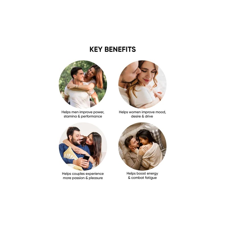 Honeymoon Pack can help the newlyweds make their intimate experiences during their honeymoon better, more passionate and truly satisfying. It has everything to make a honeymoon special, right from setting up the mood by increasing desire & drive in women to improving strength, stamina and performance in men.