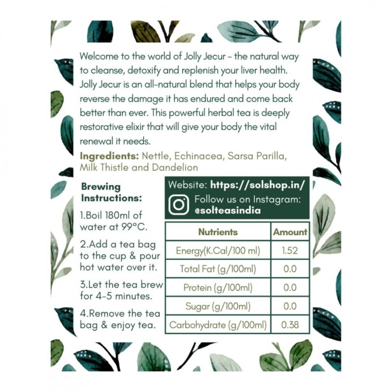 SOL - Reinvent & Restore Liver Detox Herbal Tea Bags-Dandelion Tea for Fatty Liver,Contains Milk Thistle,Nettle,Dandelion Root&Sarsaparilla,Helps Remove Toxins&Protect Liver(20 Tea Bags) 40 Grams