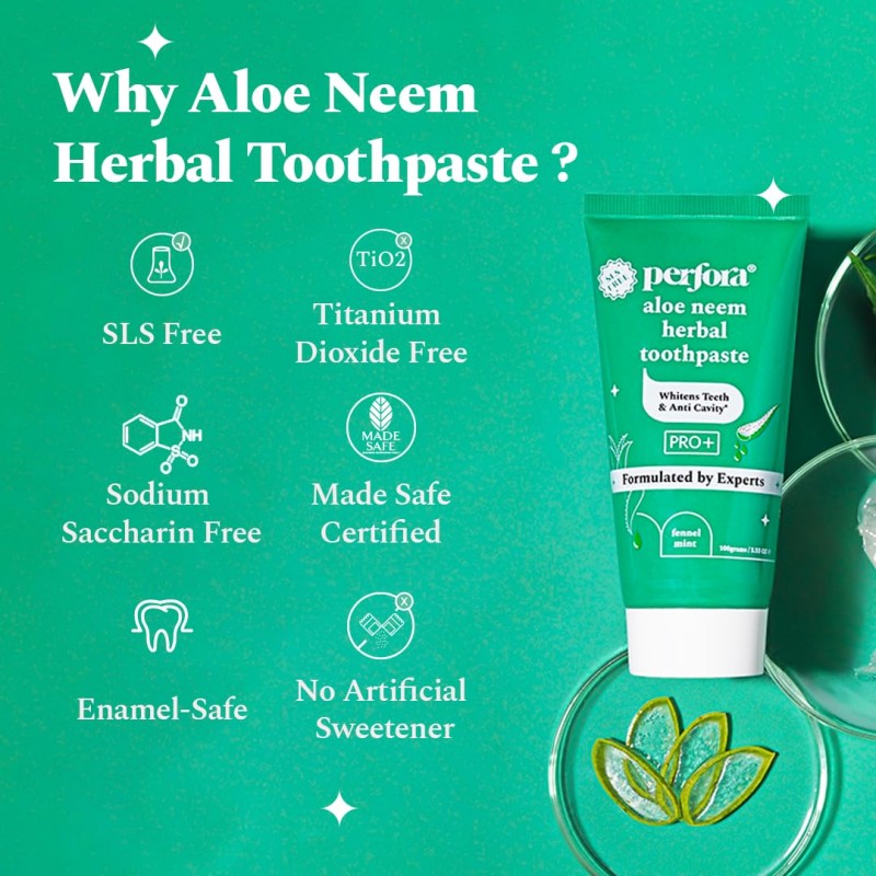 Perfora Aloe Neem Herbal Toothpaste - 100 gms Enamel Safe Teeth Whitening Toothpaste for Men & Women Formulated With Papain & Bromelain Enzyme Helps Prevent Teeth Cavities SLS Free