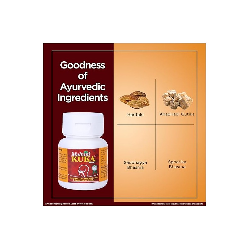 Multani Kuka Tablets are an Ayurvedic proprietary formulation containing a blend of Bhasma-based ingredients and herbal extracts.These tablets are traditionally used in Ayurveda and are formulated with botanical components known for their role in holistic wellness.