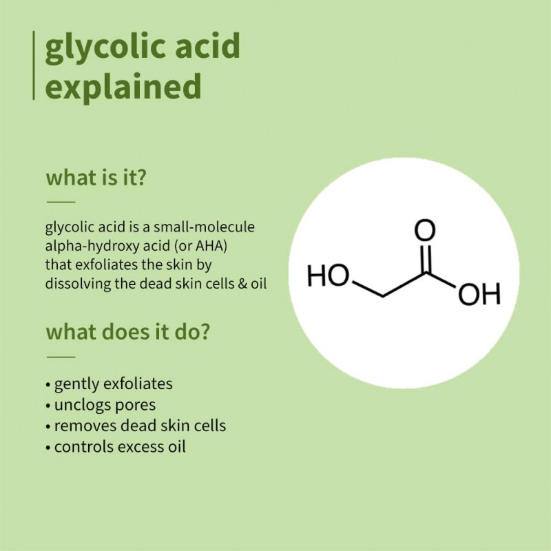• Glycolic Acid (AHA): A gentle exfoliator that brightens the complexion by removing dead skin cells and impurities that can clog pores.