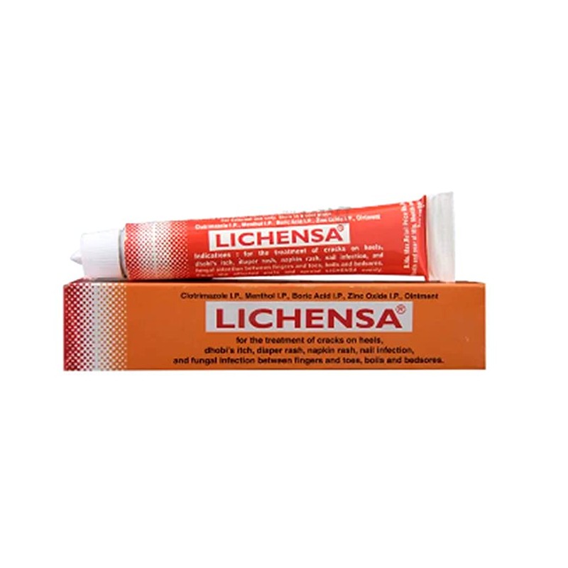 Lichensa Ointment is used for Eczema, Fungal infections of toes, back pain, dry skin, cracked skin, diaper dermatitis and other conditions. It is used to treat various skin conditions; reducing pain and delayed onset muscle soreness. Used for crack on heels, dhobis Itch, napkin rash, infection between toes and fingers, diaper rash (Adult and Children), bed sores, boils, nail Infection.