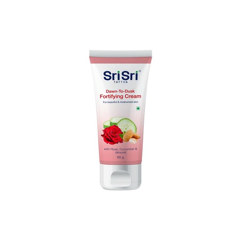 Sri Sri Tattva Dawn to Dusk Fortifying Cream protects skin against daily external factors like pollution, sun, dryness and oxidation. It helps reduce dullness and fatigue of the skin. Enriched with Coconut, Rose and Cucumber which moisturize, reduce skin damage and prevent signs of early ageing.
