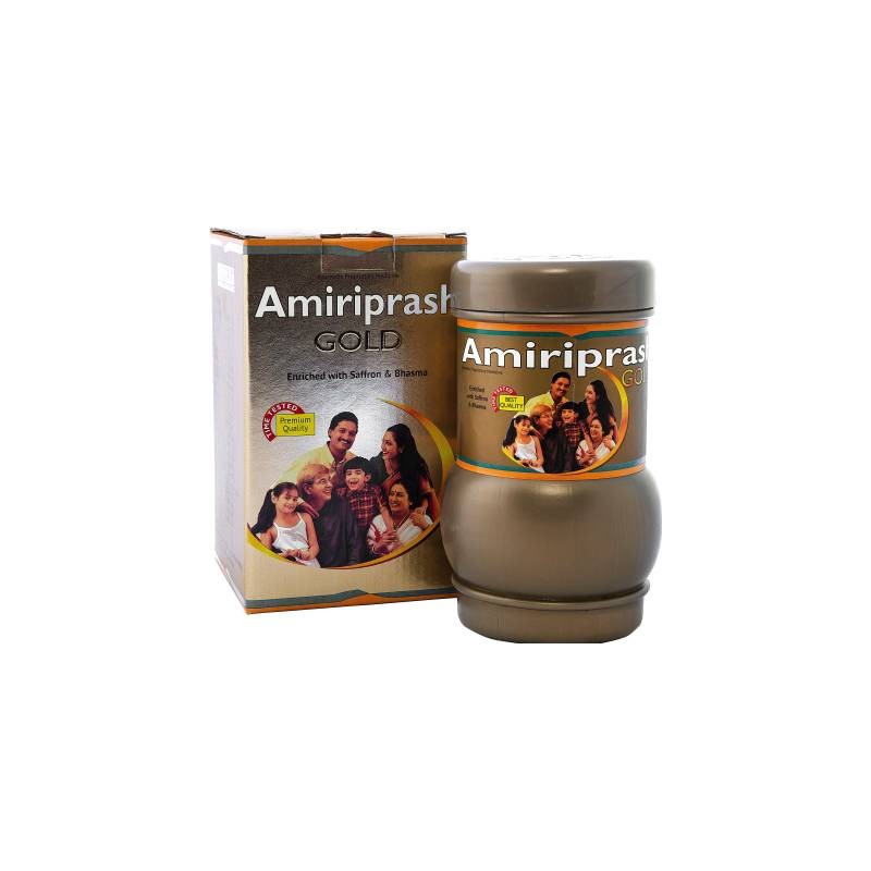 Amiriprash Gold contains all major tonic ingredients of classical Chyawanprash and is further enriched with potent wonder herbs, minerals, pure oxidized gold, silver and real saffron make it an ideal revitalize for body and mind. Amiriprash Gold is perfectly suitable for all age people to regenerate their strength.