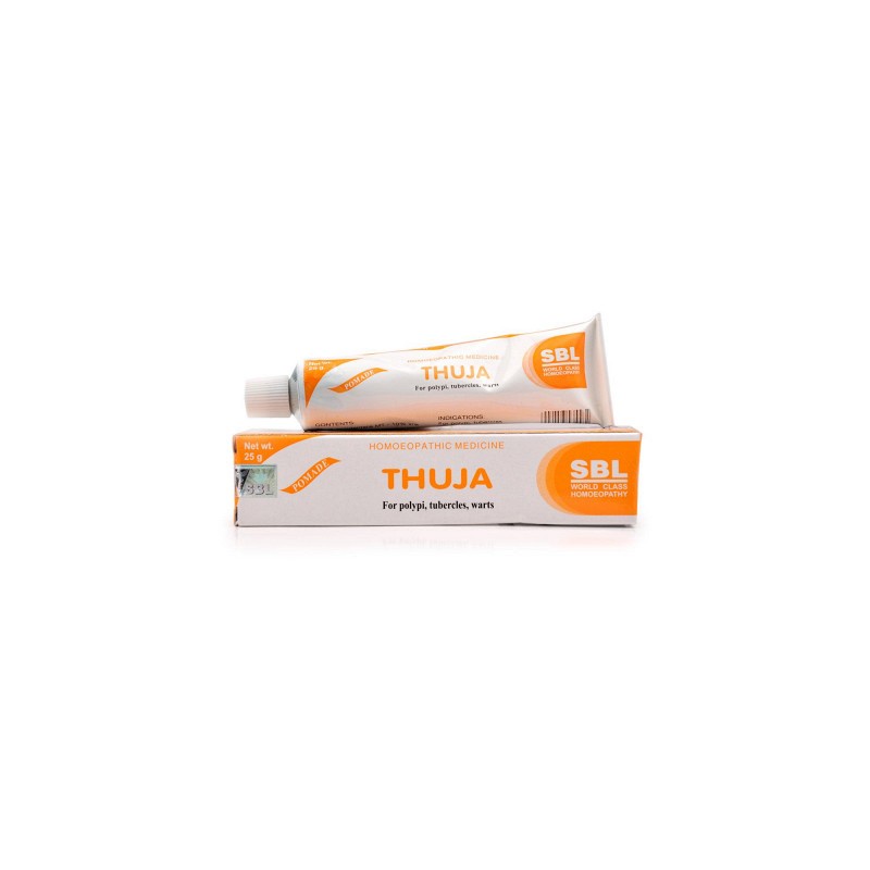 Thuja Pomade (Ointment) contains Thuja Occidentalis (10% v/w) in ointment base and is indicated for polypi (skin tags), tubercles, warts etc.