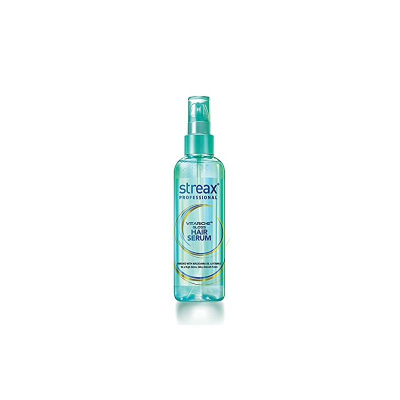 • Streax Professional Vitariche Gloss Hair Serum revitalizes and strengthens your dry and frizzy hair. It imparts a natural shine and smoothness to your hair strands
