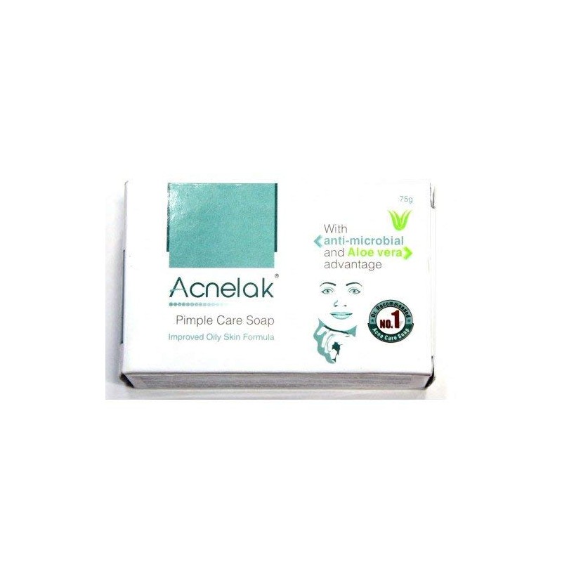 Acnelak Soap has a specialised oil-free formula that cleanses the excess oil from the acne prone skin, thereby, leaving it completely clean. Its unique ingredients provide antimicrobial action and soothes the skin. It is gentle on skin and ideal for daily use. Acnelak Pimple Care Soap has a specialised oil-free formula that cleanses the excess oil from the acne prone skin, thereby, leaving it completely clean. Its unique ingredients provide antimicrobial action and soothe the skin. How to Use: Damp face with water Rub the soap against the face to form lather Massage for about 2 minutes Rinse off with clean water Use 1-3 times a day.