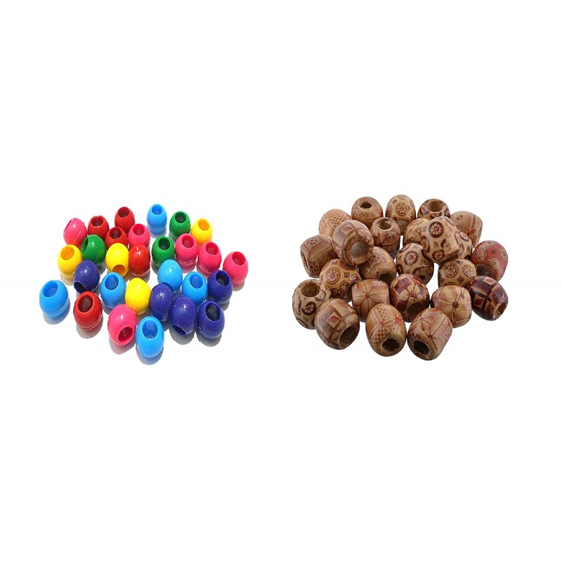 Plastic beads & wooden beads combo for jewellery making. Round & Hollow beads for making designer jewellery pieces/crafts. Also popular in silk thread wrapping.