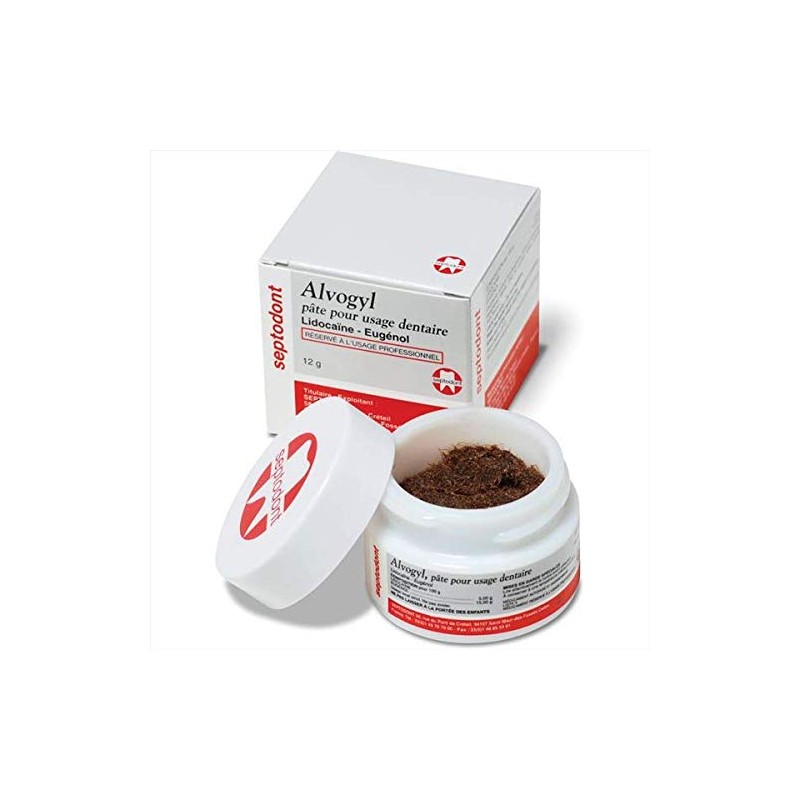 Alveogyl is a dry socket treatment dental material. With a fibrous consistency thanks to Penghawar fibers for an easy filling of the socket and a good adherence to the alveolus Provides a soothing effect on the alveolar tissues thus helping to rapidly alleviate the pain Convenient and easy-to-use: Alveogyl is a one step, self-eliminating treatment requiring no suturing and no special attention other than observation of the healing process May also be used as post-extraction dressing in patients with history of dry sockets It's available in 10gm jar.