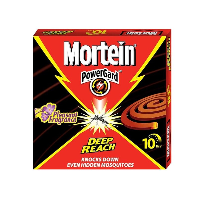 Looking for a powerful mosquito repellent and killer that can protect you and your family from the deadly dengue mosquitoes? Look no further than Mortein PowerGard 10hrs Coil! Pack contains 10 coils, offering 100% protection against mosquitoes for up to 10 hours. These coils are perfect for large open spaces and can keep even the hidden mosquitoes at bay. With our advanced formula, you can trust that Mortein will provide you with the protection you need. Say goodbye to mosquitoes and hello to Mortein 10hrs Coil – your ultimate mosquito killer coil. Get yours today and enjoy a peaceful night's sleep without the annoyance of mosquitoes!