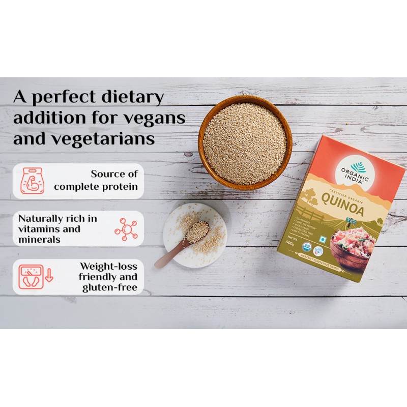 Organic India Quinoa Powder is protein-rich and is found to have all the essential amino acids that the human body need. This also has Lysine, which is usually not available in any other foods. This powder contains more proteins than brown rice, millet, barley, potatoes etc