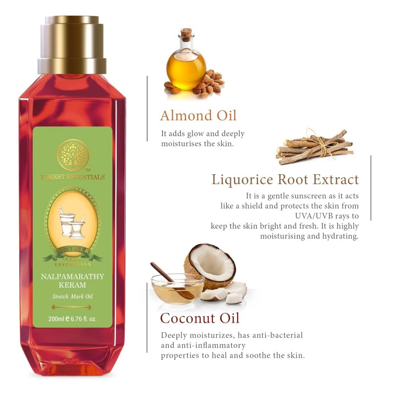 This Mother's Stretch Mark Oil Nalpamarathy Keram specifically targets stretch marks and patches that appear on the skin during pregnancy. It is completely safe to use during pregnancy.