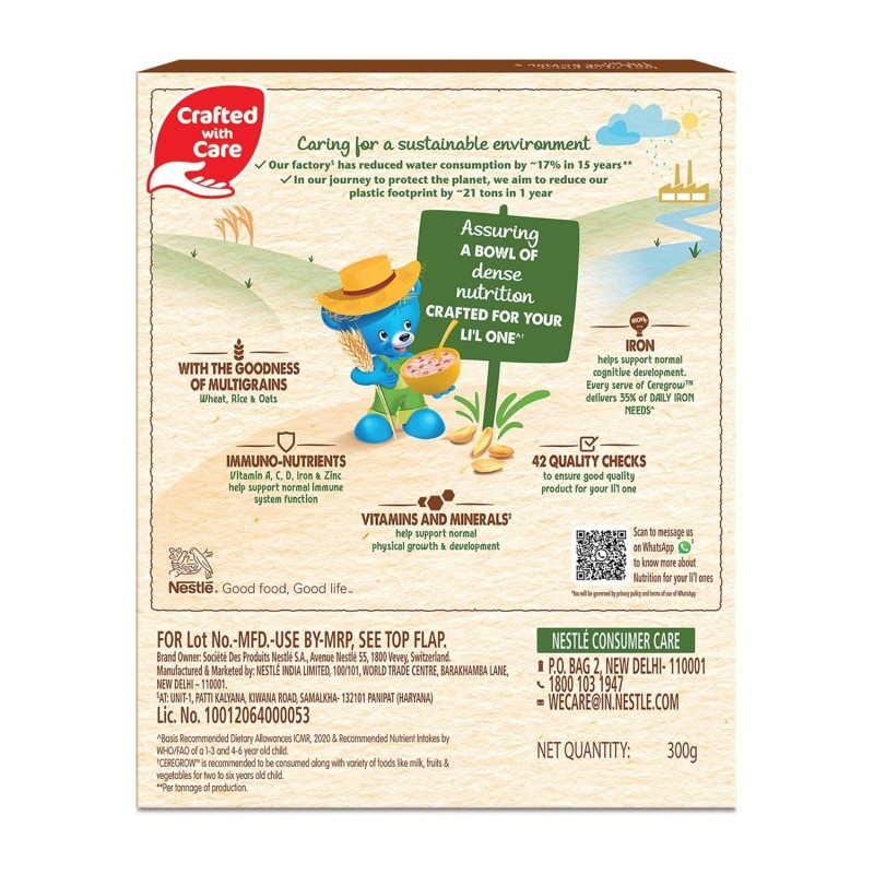 Ceregrow is a nutritious cereal with the goodness of multigrain, milk & fruits designed to meet the nutritional needs of your little one. It's packed with nourishment and the benefit of 16 vitamins & minerals to help support the normal physical growth & development of the child. Ceregrow is a rich source of Iron that helps in normal cognitive development. Crafted for your little one, it has Immuno-nutrients like Vitamin A, C, D, Iron and zinc which help support normal immune system function.