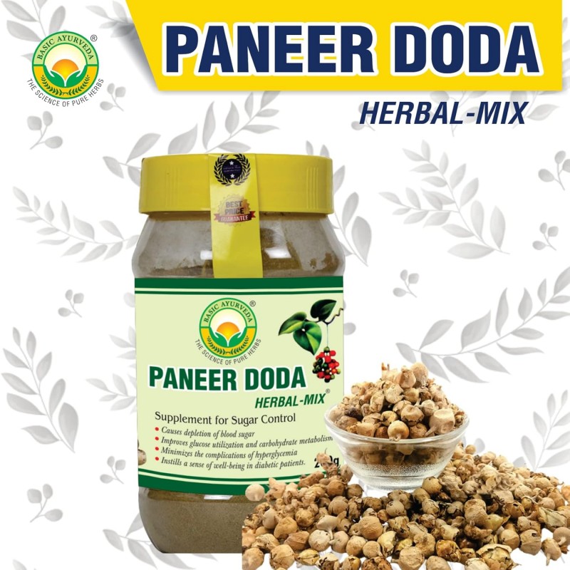 Basic Ayurveda Paneer Doda Herbal Mix Powder is a supplement which causes depletion of blood sugar and improves glucose utilization as well as carbohydrate metabolism. It also helps to minimize the complication of hyperglycaemia.
