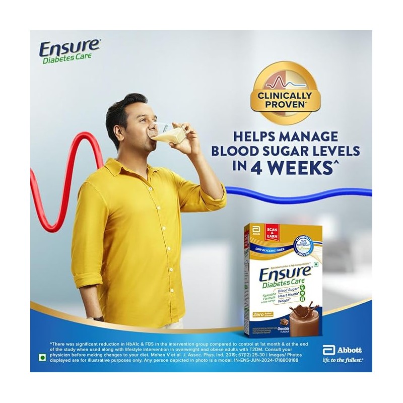 Abbott Ensure Diabetes Care- Nutrition to Help Control Blood Sugar Levels Chocolate Flavour 400g