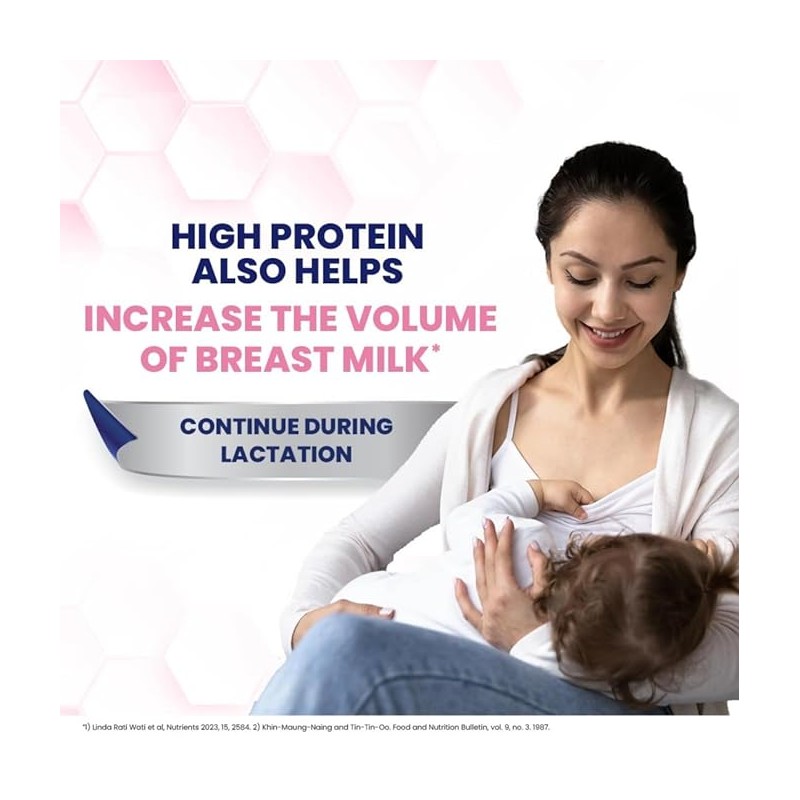 • It also contains DHA and Choline known to support Brain Development and micronutrients like Vitamins B1|| B2|| B6|| B12|| A|| D; Iodine and Selenium which are known to help improve the quality of breast milk .Horlicks Mother's Plus contains 50% RDAs^ of Immunity supporting nutrients like Vitamin A|| E|| B6 and Selenium.