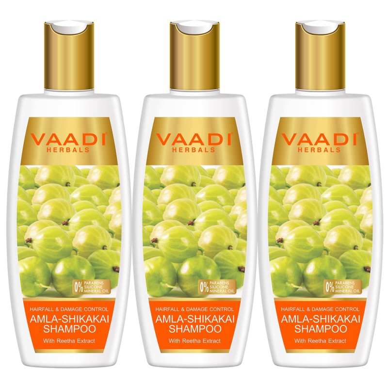 Vaadi Herbals Hair fall and Damage Control Amla Shikakai Shampoo, 350ml (Pack of 3)