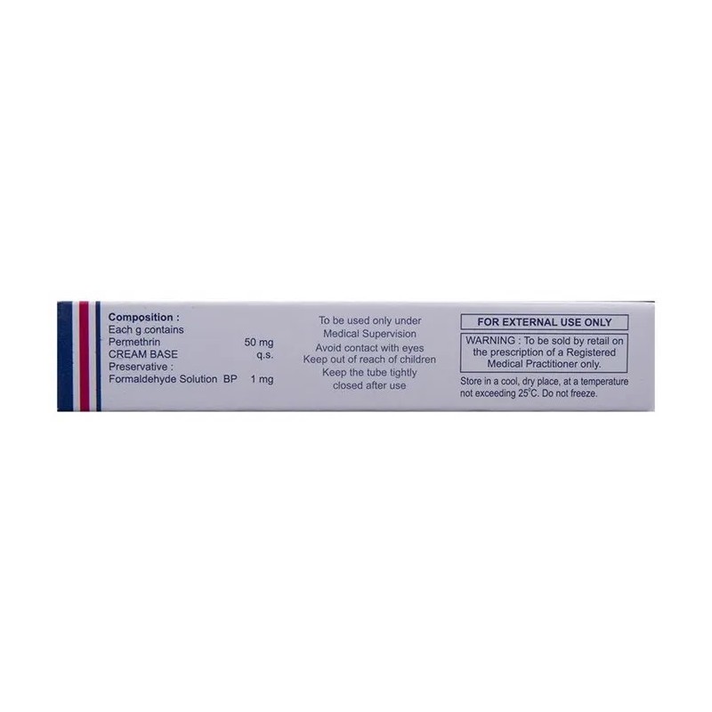 • Composition: Each g contains: Permethrin 50mg. Cream base qs Preservative: Formaldehyde Solution BP 1mg.