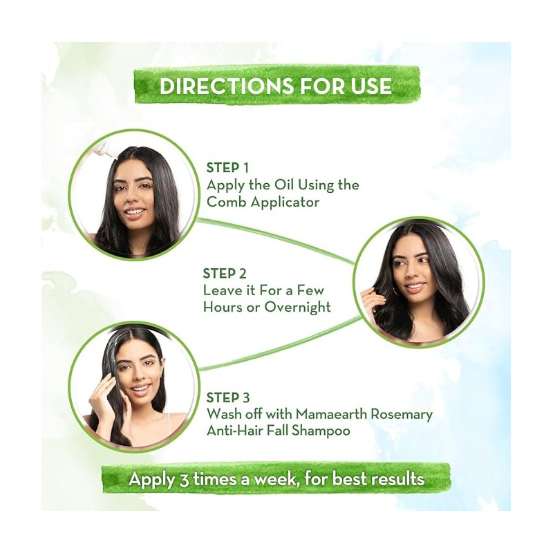 Leave it overnight or for a few hours. Wash off with Mamaearth Rosemary Anti-Hair Fall Shampoo. 4) For better results, apply 3 times in a week.
