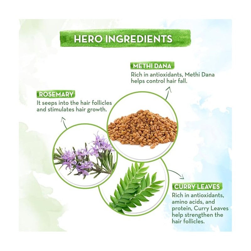 • HELPS CONTROL HAIR FALL: Infused with the goodness of Methi Dana and Bhringraj, the Hair Growth Oil strengthens the hair follicles and reduces hair fall.