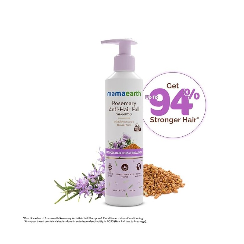 • GIVES UP TO 94% STRONGER HAIR*: Stronger hair in, hair fall out! Enriched with Rosemary, a powerhouse of nutrients, the Rosemary Anti-Hair Fall Shampoo strengthens your hair follicles and hair strands resulting in up to 94% stronger hair*.