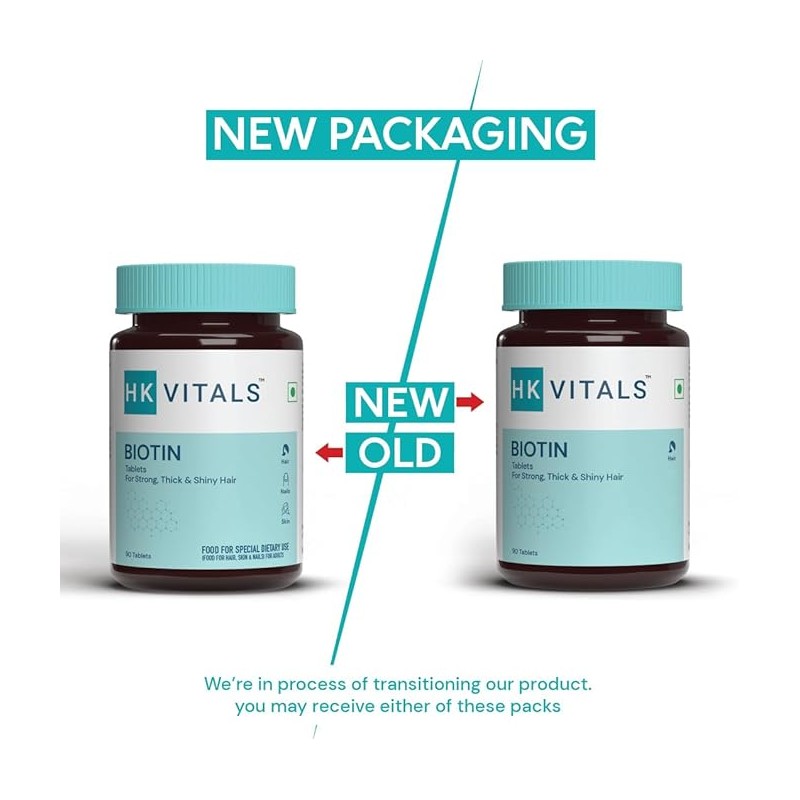 HealthKart HK Vitals Biotin is a Vitamin B7 dietary supplement that is exquisitely crafted to regulate the biotin levels in the body to help in the healthy growth and maintenance of hair, skin, and nails.