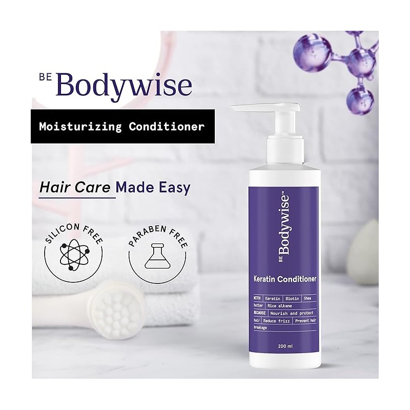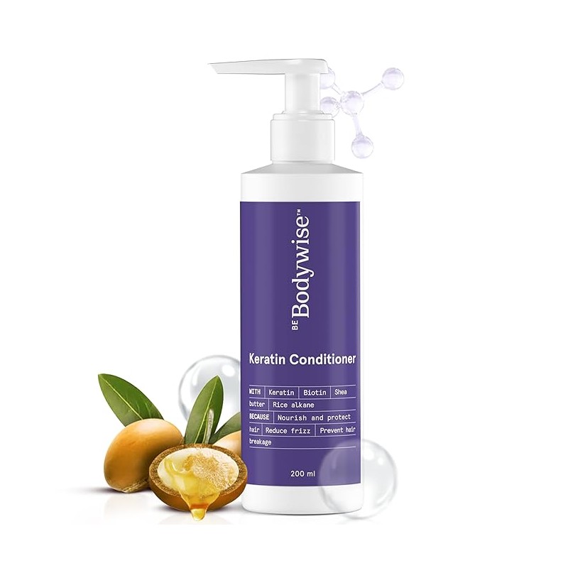 • Bodywise Keratin Conditioner, Paraben & Sls Free, Reduces Frizz, Locks In Moisture, Keratin, Silk Protein, Biotin & Shea Butter, 200 Millilitre - All