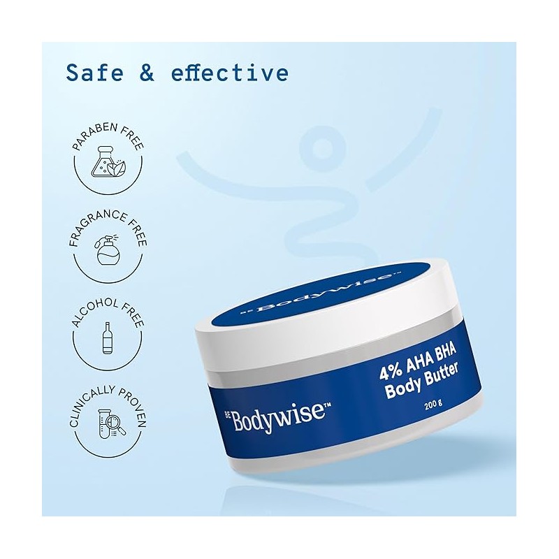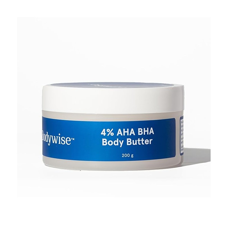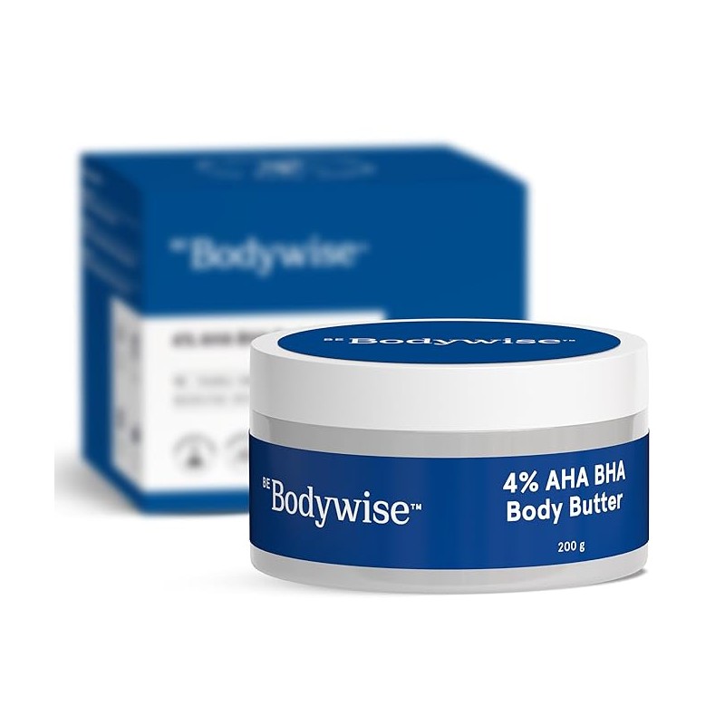• Be Bodywise 4% AHA BHA Body Butter with the power of 2% Salicylic acid, 2% Lactic acid, hyaluronic acid & shea butter.